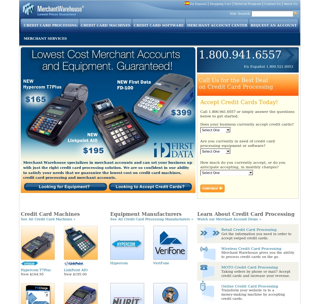 In 1998 Merchant Warehouse was founded on the principle that businesses should be able to purchase credit card machines and merchant accounts at a reasonable price. Over 40,000 merchants later, Merchant Warehouse now sets the standard for price, customer service, ethics and integrity.